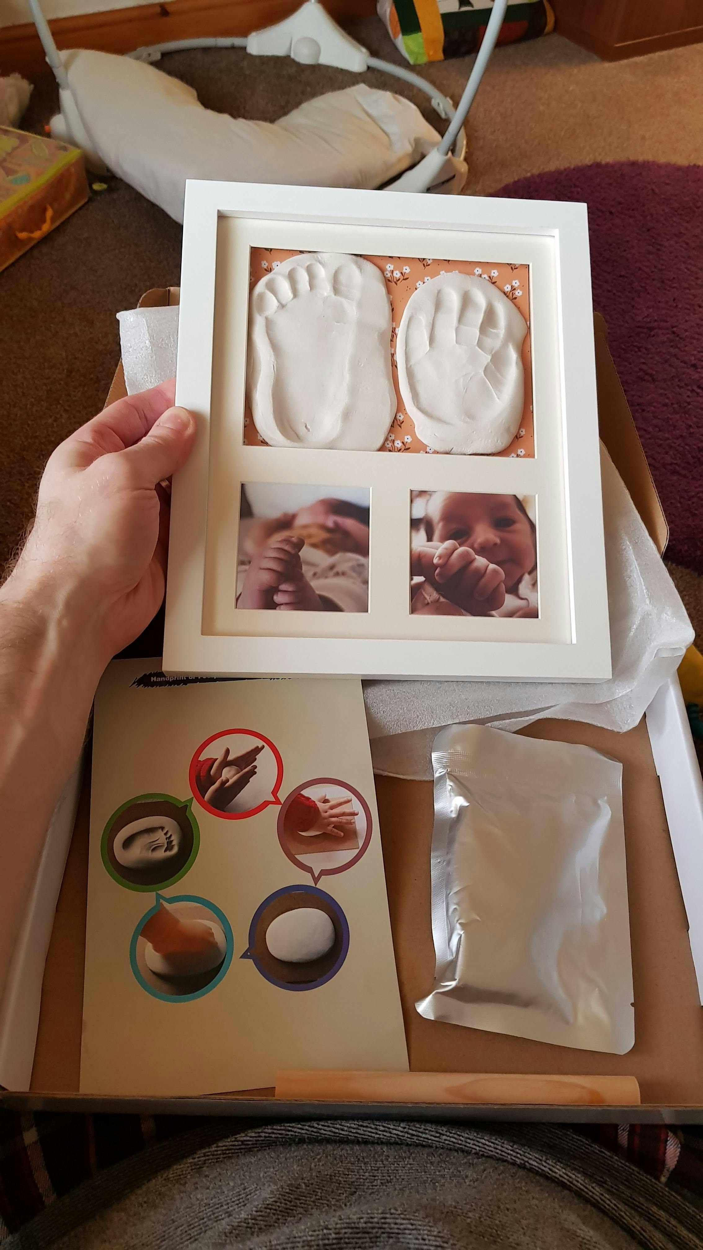 This was a gift for my husband and i must say, whilst there are similar products available, this comes beautifully packaged and is very simple and easy to use. The clay works really well and was pliable enough to make several (many) attempts before we were happy with the impression. The instructions couldn't be more straightforward and after 48 hours the clay had set nice and hard ready for hanging. Would recommend this as a gift to any new parent.