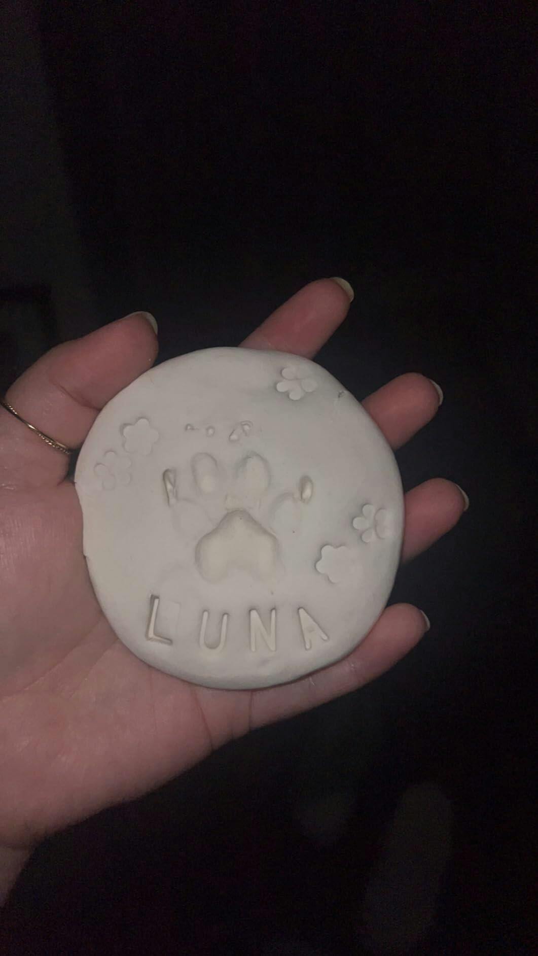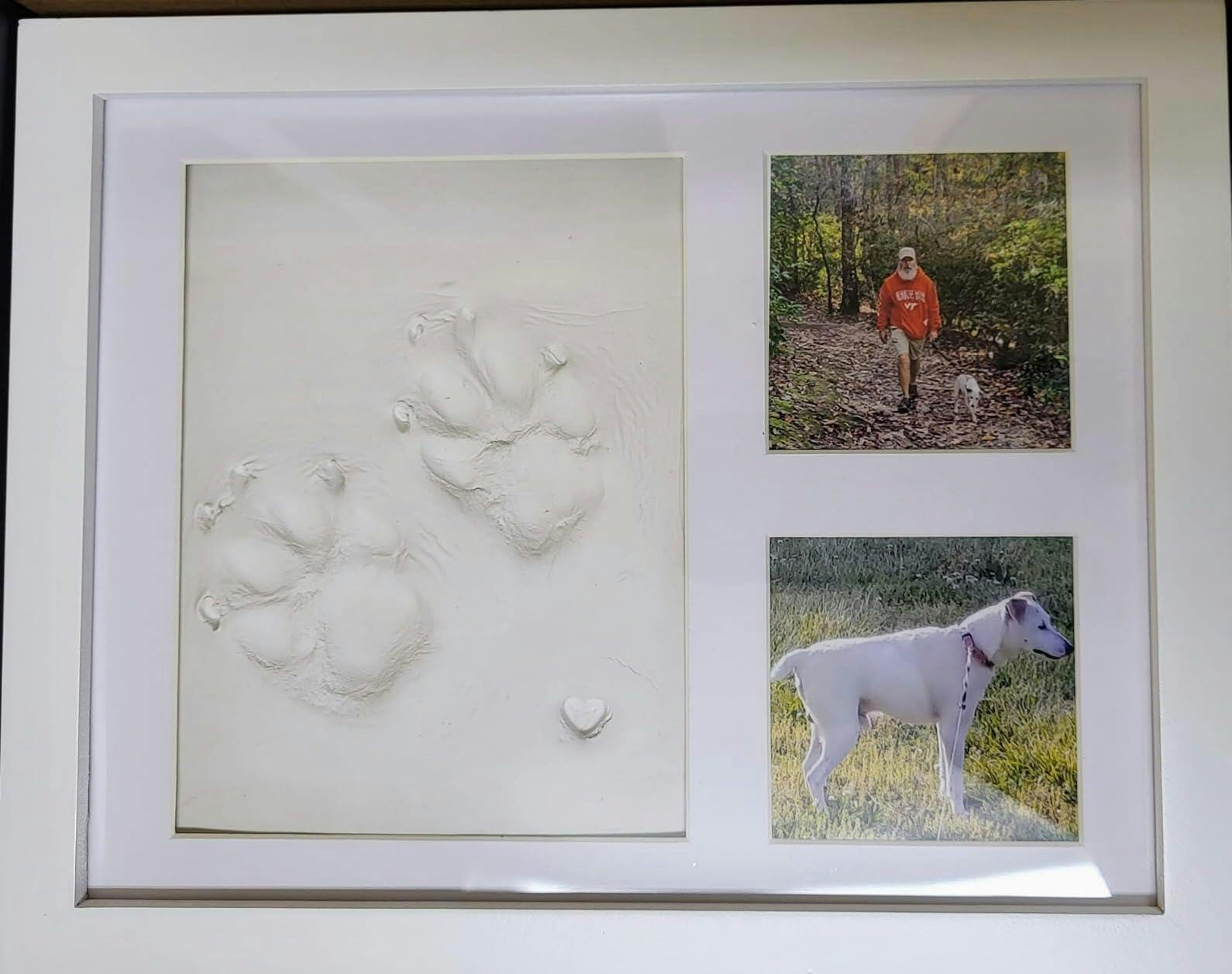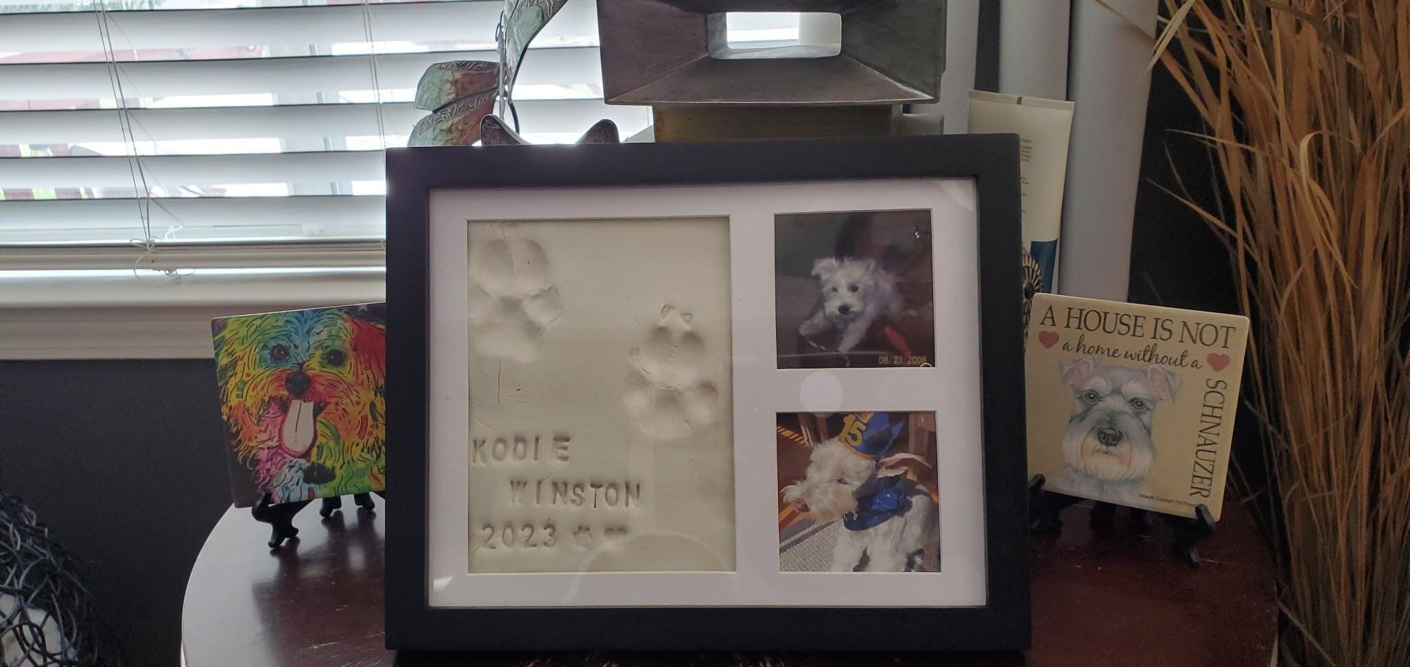 Create a lasting memory in just a few simple steps. Soften the clay, press your pet’s paw, personalize the wooden frame with the engraving pen, and let it dry